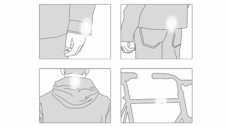Reflexen kan fästas på dina kläder, på barnvagnen eller cykeln.